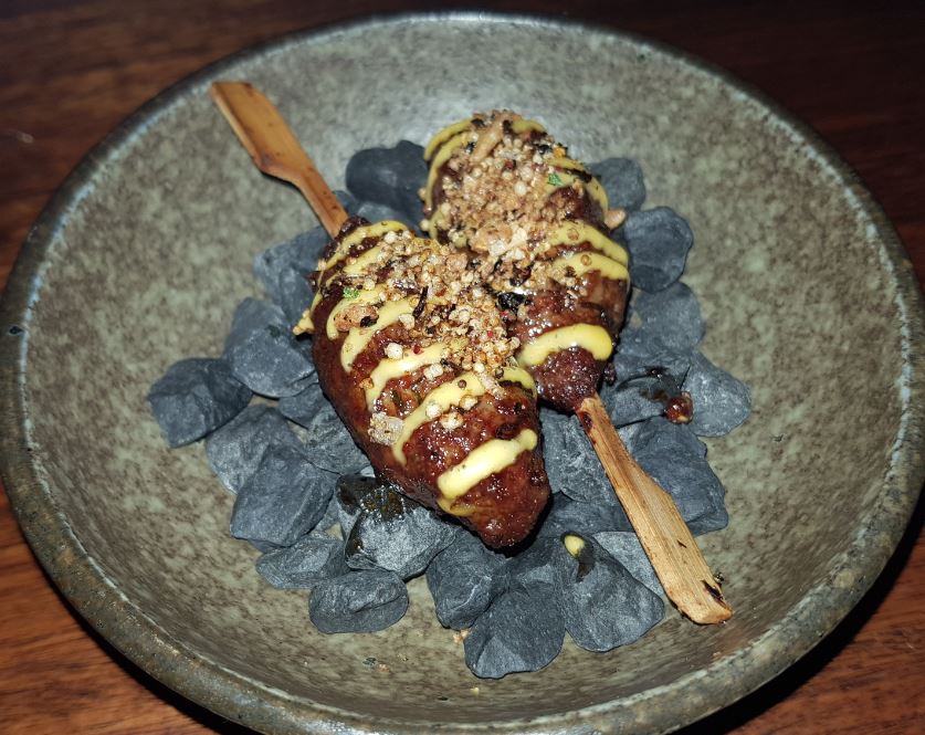 Kangaroo tsukune, salted egg, tare (a thick soy sauce) and native dukkah, another gorgeous light bite with great flavour: