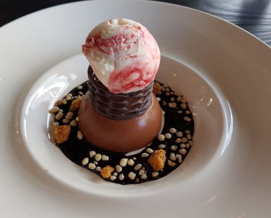 The main course was aged duck breast with five spice, apricot, cabbage and umbles (a little offal – ‘umble pie). The picture doesn’t show it well, but the skin was crisped to perfection, and the duck beautifully cooked. Every little item was meant to be on this plate, and it was a triumph of menu design.