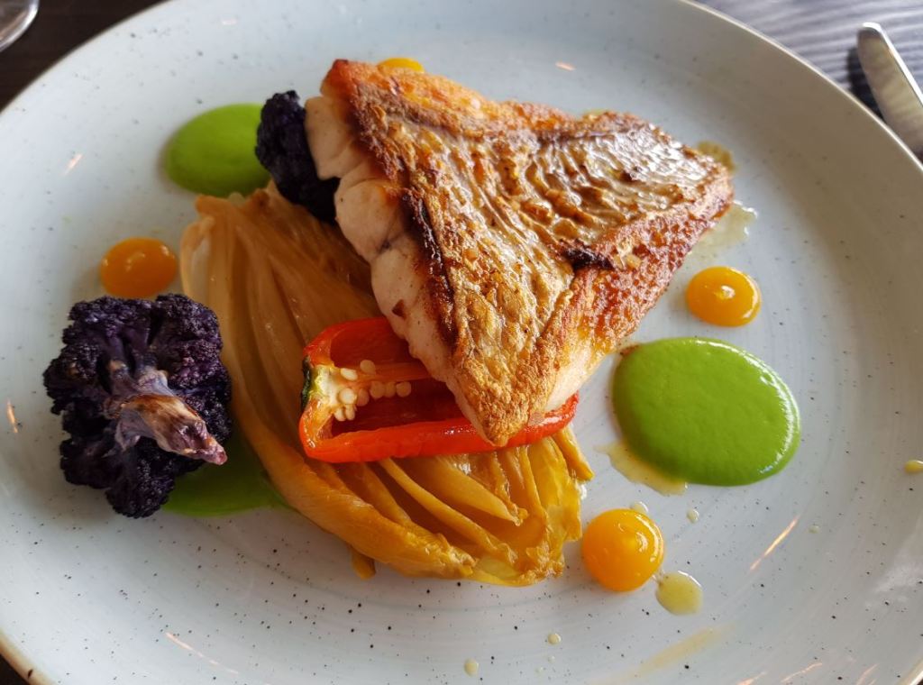 The starters consisted of: Skull Island king prawn tartlet with green apple and Geraldton wax – a really yummy mouthful with light crispy pastry, fresh prawns and crisp apple.