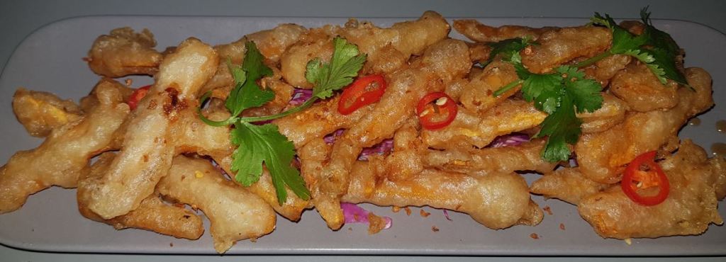 We were seated at a corner table, but it was quite dim and we needed to use our phone torches to read the menu. The menu is one of those menus where you want to try everything. All dishes are shareable, but we decided to go for shared starters and have our own mains. The flavours are Asian, probably more Japanese than anything, but a good variety of interest on the menu.