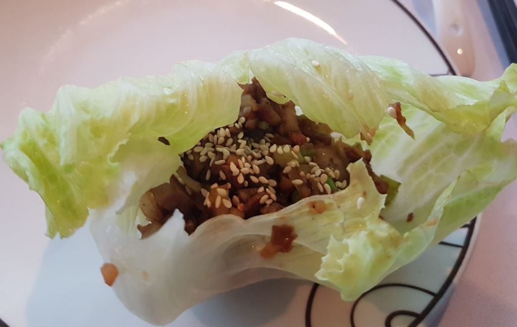 Next came san choy bow, a generous portion each of lettuce leaf filled with chopped duck and seasonings. Again another very satisfying course.
