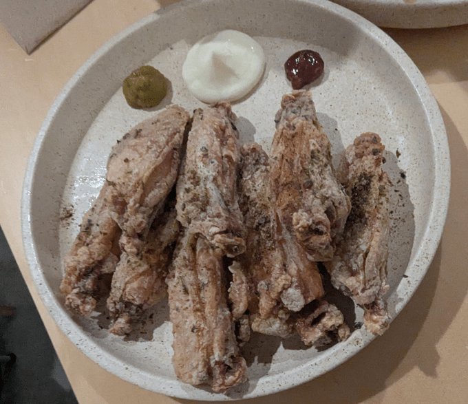 Next came the shio teba chicken wings with yuzu koshu, umeboshi paste and mayo – so moorish and addictive.
