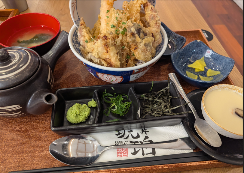 What could be nicer than tempura and rice? Tendon Kohaku have a mouthwatering list of choices and “tendon” is a portmanteau of tempura and rice, nothing to do with connective tissue!
